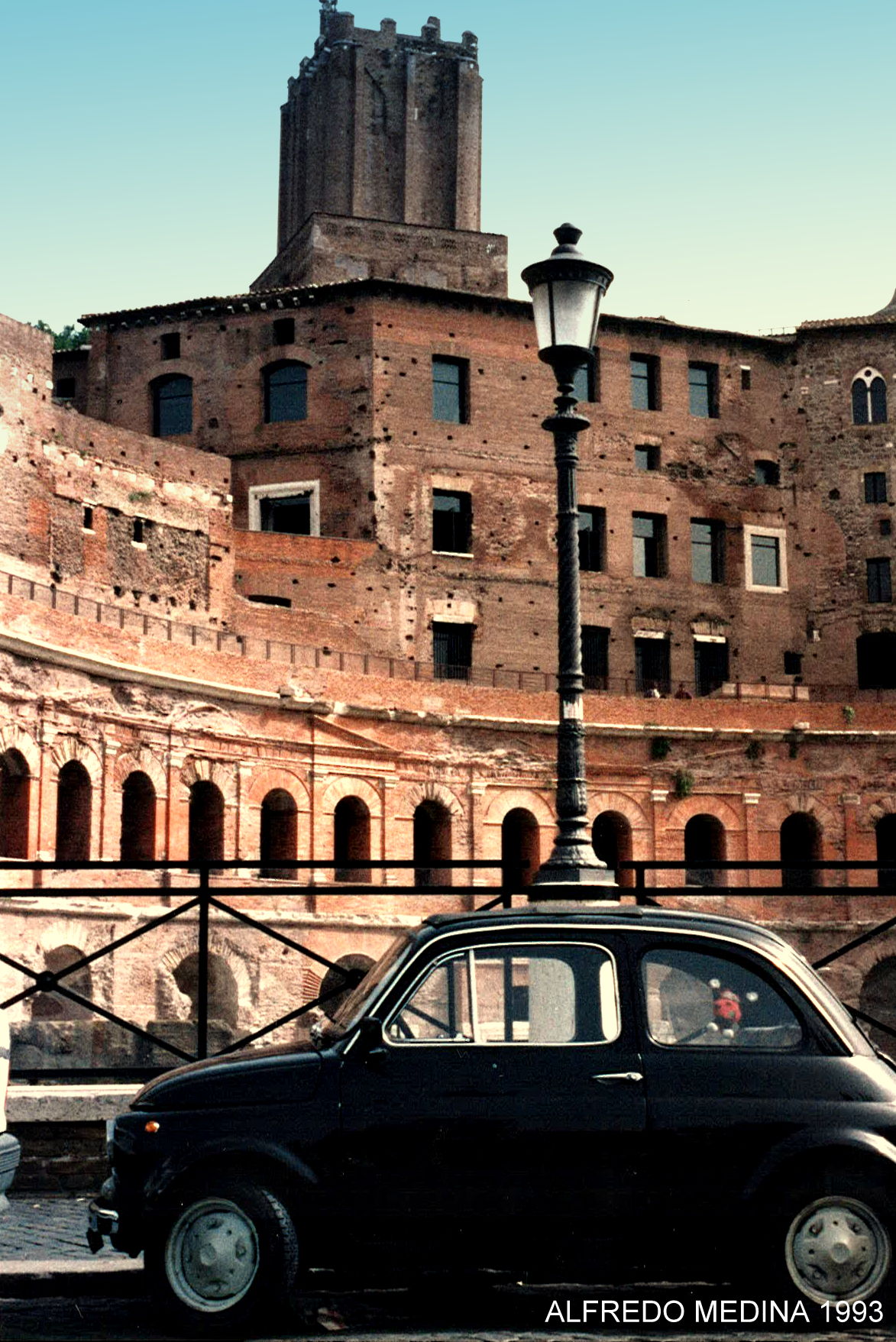 El primer centro comercial cubierto de la Historia data del siglo II d.C. Los emperadores romanos quisieron ganarse el favor del pueblo y perpetuar su memoria con la construcción de grandiosos edificios. Como muestra de su poder y filantropía, Trajano ordenó levantar un gran mercado de seis pisos, que incluía tiendas, biblioteca y oficinas. En la caótica Roma de hoy, los vehículos lo invaden todo; pero se integran con naturalidad en un paisaje urbano lleno de contrastes. Si hubiese que elegir un coche eterno que se pudiera identificar con la ciudad milenaria, ese sería el FIAT 600.