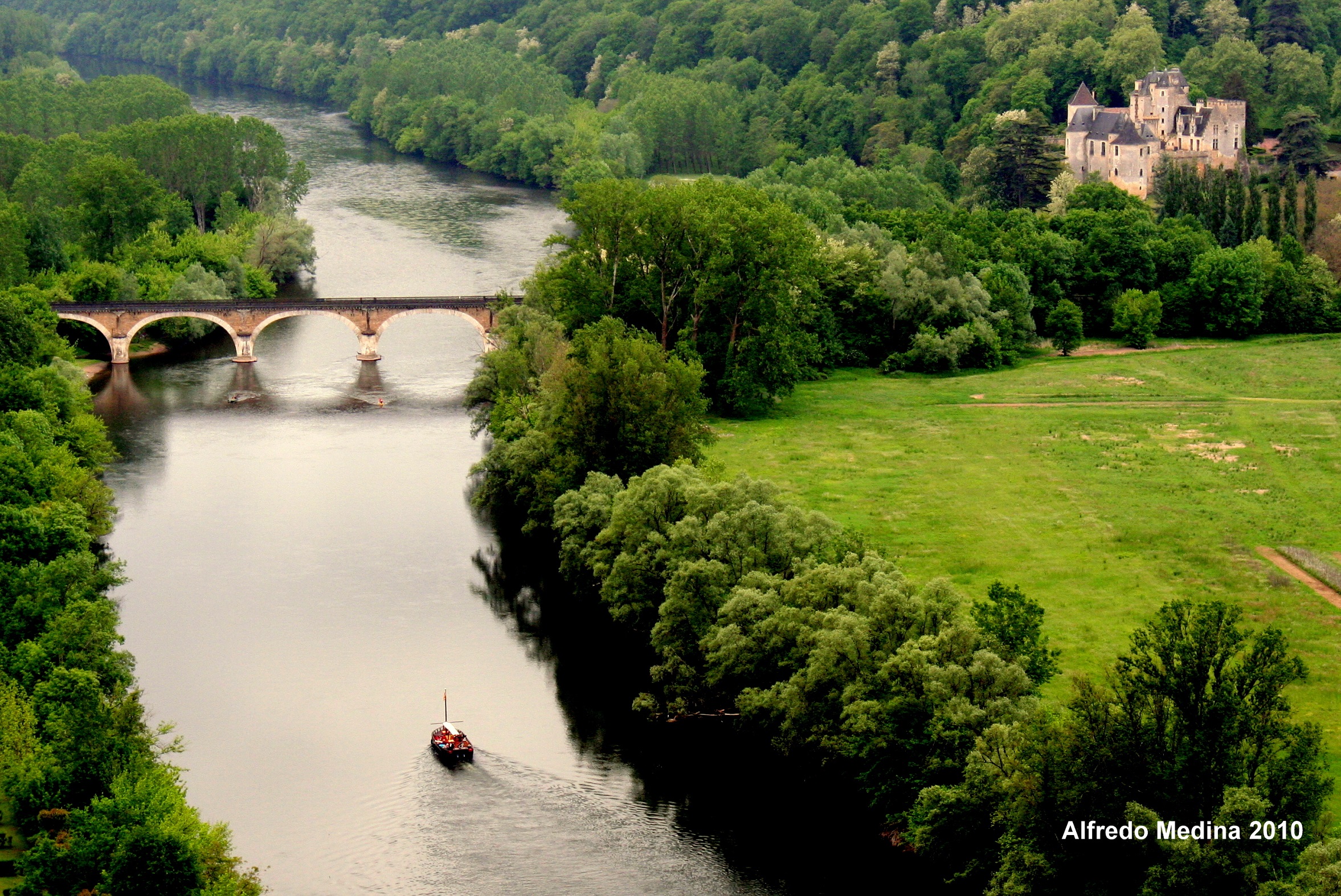 El entorno natural del río Dordoña apasiona inevitablemente a todo viajero. La orografía karstica de esta comarca del sur de Francia está salpicada por frondosos bosques de robles y castaños. Sus tonalidades ocres y verdosas se reflejan en un río impoluto, que se torna de color esmeralda. La acción humana en este espacio casi inalterado se manifiesta en la presencia de varias villas medievales, que se asoman al río sobre elevados promontorios. Una de las localidades más cautivadoras es sin lugar a dudas Beynac. Al atardecer descendemos por sus callejones empedrados, y descubrimos una visión del valle que enamora.